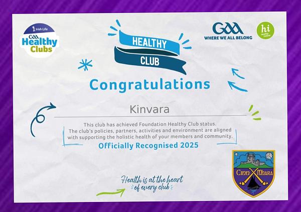 🟣Kinvara GAA is delighted to announce that we have achieved our official GAA Healthy Club Status.