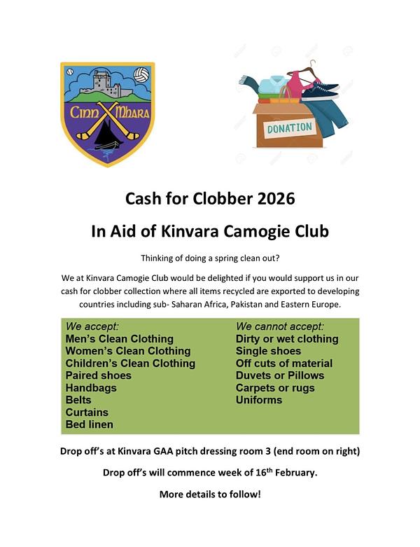 Drop off’s will commence tomorrow (Monday 16th February) for our 2026 Cash for Clobber fundraiser.